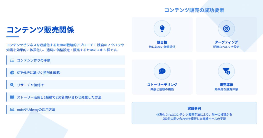 事業主としての心構えから商品設計、価格戦略、販売戦略、BtoB営業まで、事業運営の全体像を体系的に理解し、確実な基盤を構築できます。