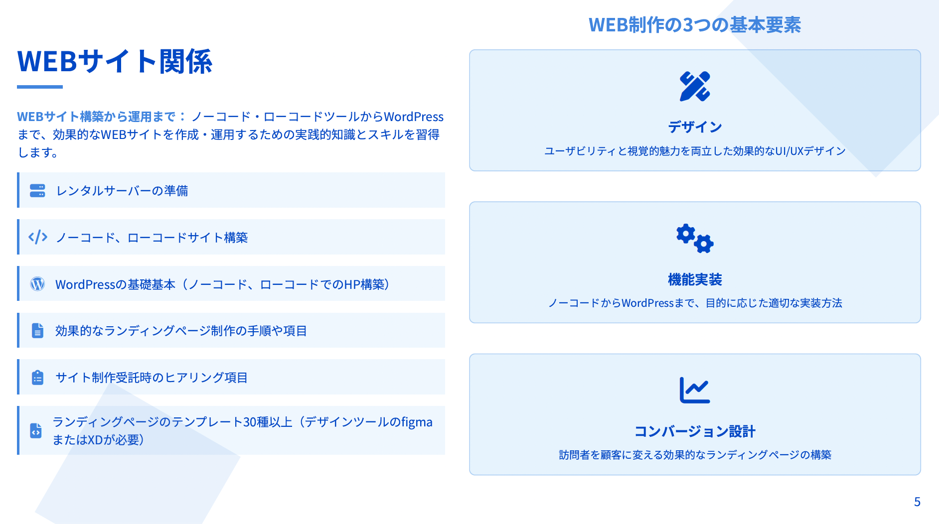 スキル獲得の初期段階から実践的な質向上、BtoB対応能力の強化まで、事業運営に必要なすべての要素を体系的に提供しています。